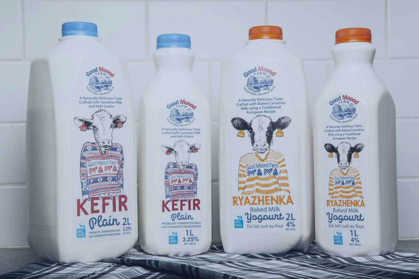 Le kéfir de «Good Moood Farm» est un produit entièrement naturel fait selon une recette traditionnelle. Nous commençons avec du lait Canadien frais à 100% et nous le culturons avec des vrais grains de kéfir et de la levure de kéfir pour produire une boisson probiotique douce et effervescente, avec un goût frais qui ne contient aucun sucre ajouté. Il est sûr d'être un ajout sain et délicieux à l'alimentation de votre famille!
